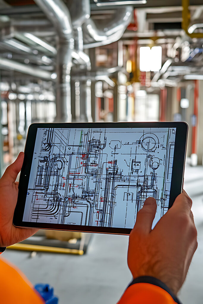 Vue globale de votre installation avec implantation des équipements et tracé des réseaux. Coordination avec les autres corps de métier pour éviter les conflits et optimiser l’espace.